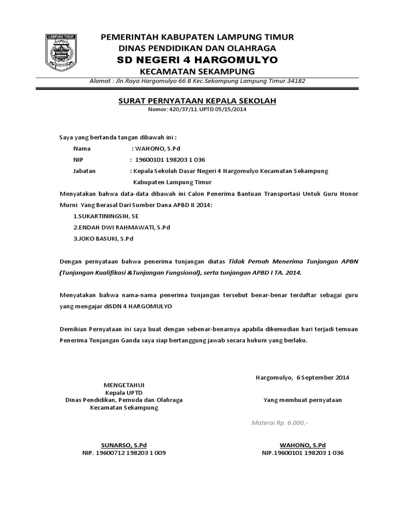 Contoh Surat Pernyataan Kepsek Tentang Daerah Sulit : 14 Contoh Surat Pernyataan Kepala Sekolah Tentang Keabsahan Data Kumpulan Contoh Surat : Setelah beberapa waktu lalu kita belajar mengenai contoh surat resmi , dan surat pribadi.